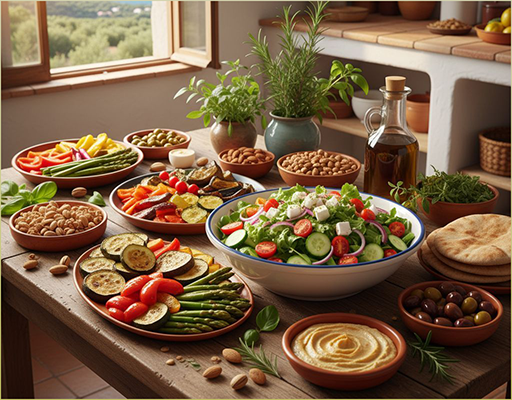Dieta śródziemnomorska, bogata w warzywa, zioła, oliwę z oliwek i orzechy,
